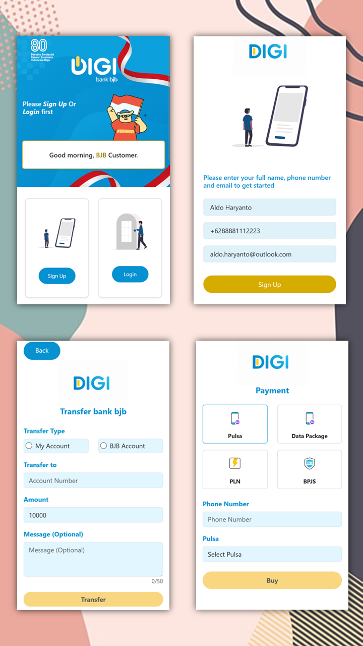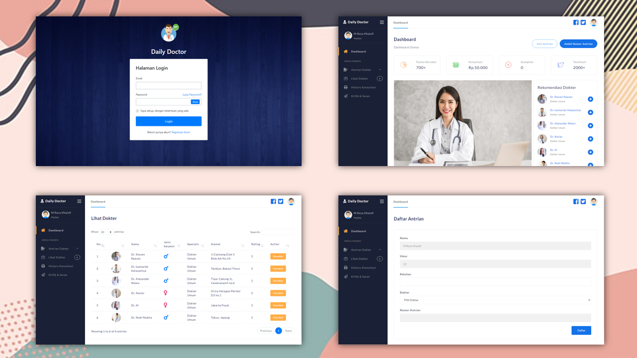 Here are some portfolios that I have worked on, such as a work website and webview project for PT. easySoft Indonesia, website when I was an intern for PT. Kirana Megatara. Then my android-based final college thesis. There are also some of my freelance projects with college friends in one community @kodinginaja while waiting for graduation and assignments during college.